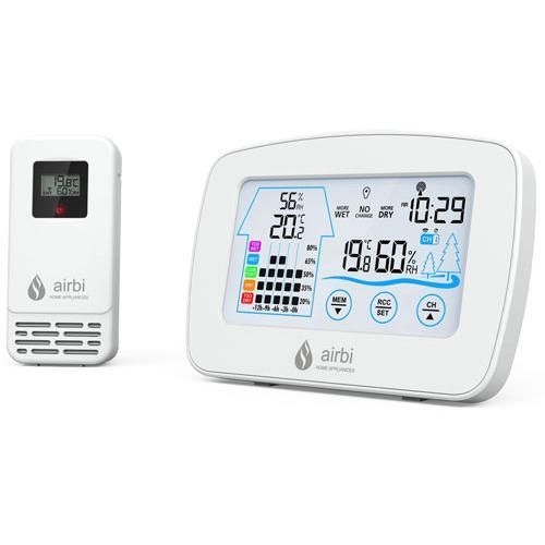 Mantenha a qualidade do ar sob controlo. O Airbi Control Thermo-Higrómetro mede a temperatura e a humidade do ar com precisão. Graças ao seu sensor sem fios, pode monitorizar facilmente a qualidade do ar no exterior ou noutras divisões da casa. O Airbi Control inclui funções úteis como representação gráfica da qualidade do ar e dicas de ventilação para manter o ambiente sempre saudável. O conjunto inclui: 1 estação base 1 sensor sem fios de temperatura e humidade