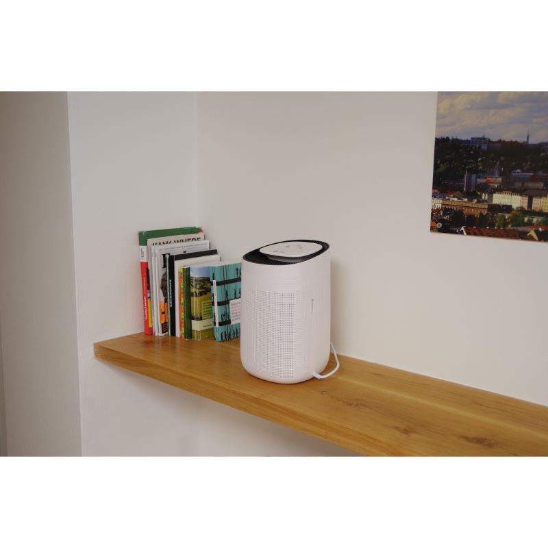 Tem problemas com humidade excessiva e impurezas no ar? O purificador de ar Airbi Sponge oferece a solução ideal. Para além de reduzir a humidade, também filtra partículas de pó, bactérias, pólen, bolores e outras impurezas do ar (filtro de ar HEPA). Este desumidificador potente e compacto foi concebido para divisões até 20 m² e funciona de forma extremamente silenciosa (45 dB(A)). Airbi Sponge – ajuda-o a manter um clima interior saudável.