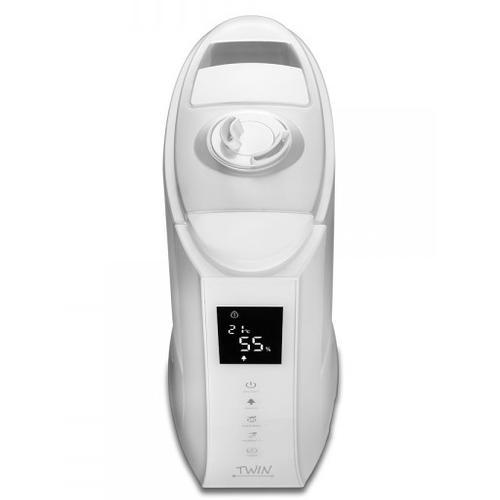 Airbi TWIN Humidificador Ultrassónico – Dispositivo Multifuncional: Humidificador, Ionizador e Aromaterapia O Airbi TWIN é um humidificador ultrassónico 3 em 1: além da função de humidificação, está equipado com um sistema de plasma e uma caixa de aroma para óleos essenciais. O sistema de plasma liberta iões positivos e negativos no ar da divisão, combatendo os agentes patogénicos presentes no ambiente antes que possam afetar o corpo humano. Ao adicionar óleos essenciais, pode tornar o ambiente ainda mais agradável com o seu aroma preferido e aproveitar os efeitos benéficos da aromaterapia. O ar demasiado seco pode irritar as mucosas e causar vários problemas de saúde, como tosse seca, alergias ou congestão nasal. Com um depósito de água de 5 litros, o Airbi TWIN consegue humidificar o ar em divisões até 45 m². Quando o depósito está vazio, o sistema envia um alerta e o recipiente pode ser facilmente reabastecido na torneira – a pega confortável facilita o transporte. O que torna o Airbi TWIN único são as suas numerosas funcionalidades. Está equipado com temporizador, modo noturno, indicação acústica e visual de depósito vazio, e um grande ecrã LCD que facilita o controlo do dispositivo através do painel tátil ou do comando incluído. O Airbi TWIN possui um higrostato digital integrado e um termómetro. Este humidificador 3 em 1 pode ser utilizado tanto em modo manual como automático. No modo manual, o utilizador regula a emissão de vapor de água em 3 níveis diferentes de potência. No modo AUTO, o utilizador define a humidade desejada e o humidificador ajusta-se automaticamente. A saída de vapor é rotativa, permitindo a distribuição em duas direções. Com um design intemporal, o Airbi TWIN adapta-se a qualquer estilo de interior. Está disponível em duas cores: preto e branco. Características principais: 3 em 1 – Humidificador, sistema de plasma e aromaterapia Para divisões até 45 m² Grande ecrã LCD de fácil leitura Comando remoto incluído Filtro de água e filtro antibacteriano Higrostato digital e termómetro integrados Muito silencioso: nível de ruído de apenas 35 dB(A) Bocal rotativo para saída de vapor em 2 direções Baixo consumo: máx. 30 W Desligamento automático com depósito vazio Capacidade do depósito de água: 5 litros Temporizador (função de agendamento) Ecrã LCD intuitivo com teclado tátil Dimensões: 335 × 285 × 150 mm Peso: 2,6 kg Airbi TWIN – Alta performance com consumo de energia extremamente reduzido.