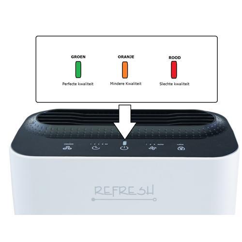 Purificador de ar HEPA com ionizador Airbi Refresh O Airbi Refresh é um purificador de ar eficaz com um design moderno. Este purificador com filtro HEPA fornece rapidamente ar limpo para si e para a sua família. O sistema de purificação de ar foi concebido para divisões até 30 m², com uma capacidade de purificação do ar até 200 m³/hora. Filtragem HEPA Na primeira fase da purificação do ar, as partículas maiores (como pelos de animais) são retidas pelo pré-filtro. O filtro HEPA remove quase 100% das partículas de pó fino. O filtro de carvão ativado foi concebido para eliminar odores e vapores indesejáveis. Finalmente, o Airbi Refresh liberta iões negativos no ar para uma purificação ativa. Estes iões contribuem também para o bem-estar físico e mental. Filtros e Ionização O Airbi Refresh é um purificador de ar compacto e fácil de manusear com uma elevada eficácia graças à combinação de três filtros e um potente sistema de ionização. A ionização pode ser ligada ou desligada manualmente. Sensor de qualidade do ar Este purificador adapta automaticamente o seu funcionamento com base nas condições do ambiente, graças a um sensor de partículas. Características principais do Airbi Refresh Purificador potente Funcionamento automático ou manual Filtragem HEPA para partículas finas Filtro de carvão ativado para odores Pré-filtro para partículas maiores Funções adicionais: Sensor de qualidade do ar, Temporizador, Ecrã, Ionização do ar Indicador de qualidade do ar Nível de ruído: 30–55 dB(A) Ionização ativa Desempenho de purificação (CADR): 200 m³/h Para divisões até 30 m² Ecrã LED informativo Visualização da qualidade do ar O Airbi Refresh está equipado com um sensor que monitoriza continuamente o ambiente. Quando necessário, o aparelho ajusta automaticamente o funcionamento para melhorar a qualidade do ar. A qualidade medida é apresentada no ecrã LED com três cores distintas: Verde = ar excelente Laranja = qualidade moderada Vermelho = má qualidade do ar Temporizador O Airbi Refresh inclui uma função de temporizador, permitindo-lhe definir quando o purificador deve ligar ou desligar automaticamente. Sistema de filtragem de alta qualidade De fora para dentro: A tampa frontal moderna protege a entrada de ar. O pré-filtro retém partículas maiores. O filtro de carvão ativado elimina vapores e odores. O filtro HEPA remove quase todas as partículas finas. O Airbi Refresh combate eficazmente: Pó fino Alérgenos de animais Pêlos e fibras Pólen Bolores Fumo de tabaco Odores de cozinha Vapores químicos Maus odores Substituição dos filtros O Airbi Refresh possui um indicador de substituição de filtro, ativado após 1500 horas de funcionamento. Quando este limite é atingido, o LED sobre o botão de modo de funcionamento começa a piscar. Substitua então o filtro HEPA / de carvão ativado. Para reiniciar a contagem, mantenha o botão de modo de funcionamento pressionado durante 5 segundos.