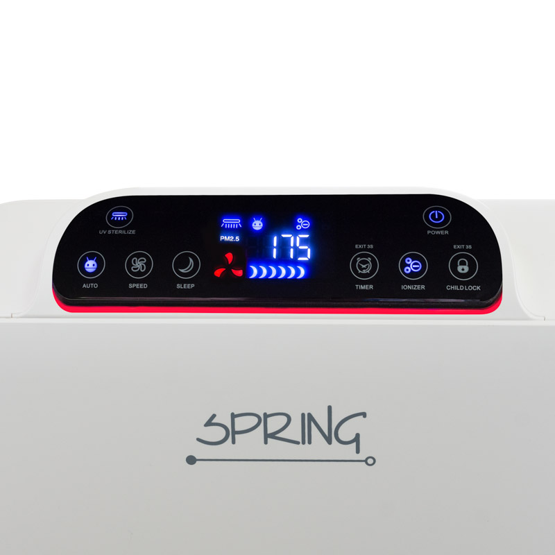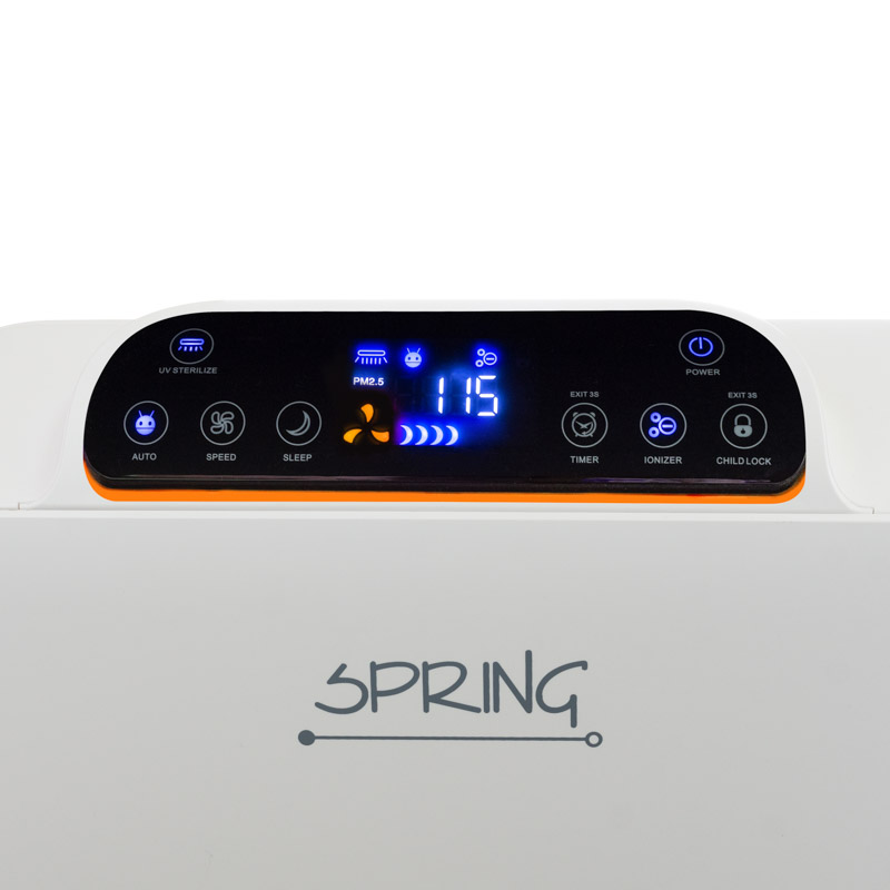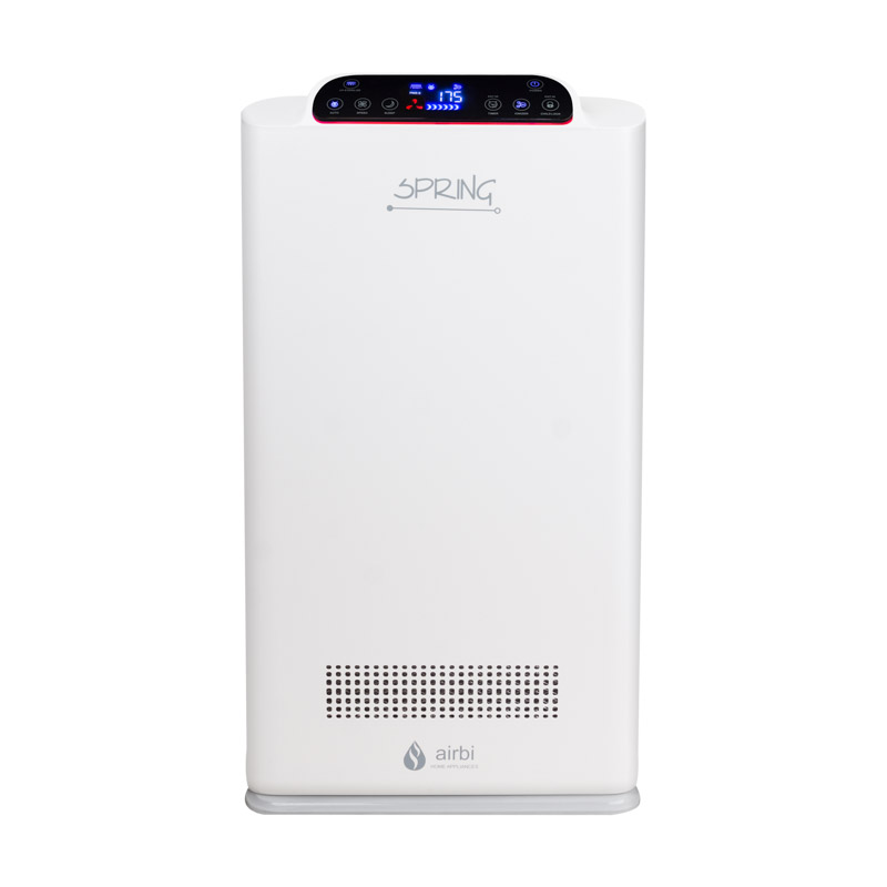 Airbi Spring é um purificador de ar extremamente silencioso com filtro HEPA, indicado para espaços até 50 m². Equipado com um sistema de filtragem em 7 etapas e um ionizador potente. O purificador de ar Airbi Spring utiliza tecnologia UV e é muito fácil de usar, especialmente graças ao seu programa inteligente automático (smart automatic) e ao seu ecrã LED claro e intuitivo.